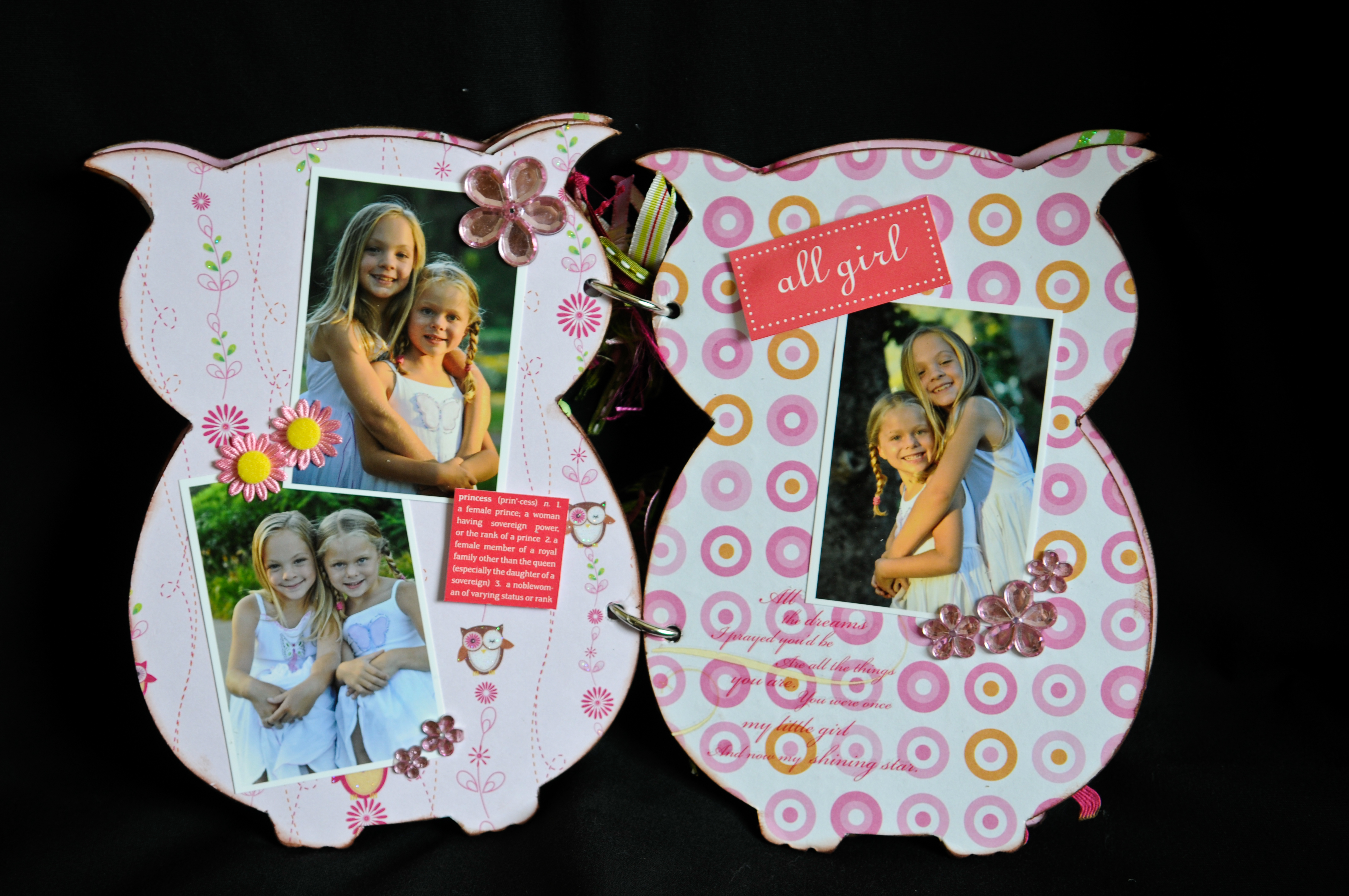 Owl Chipboard Album – Clear Scraps, Rub Ons – Die Cuts with A View, Crystal Stickers – Mark Richards, Gems – unknown, Flowers – Creative Charms, Gem Flowers – Creative Charms |