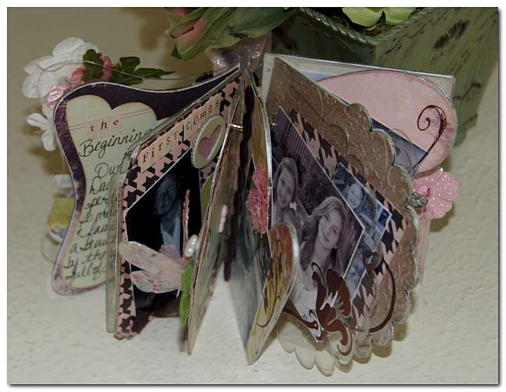 Here you can see a closer look at one of the chipboard pages that was embossed. I've taken the Ranger Paint Dauber and lightly rubbed it on the surfase of the embossed chipboard to give it a beautiful pearl sheen.