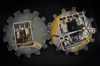 –Print Wallet and 3.5 X 5" sized black and white photos and adhere 1-2 photos per page with Helmar Premium Craft Glue.