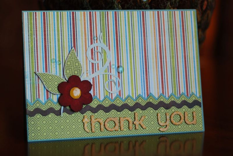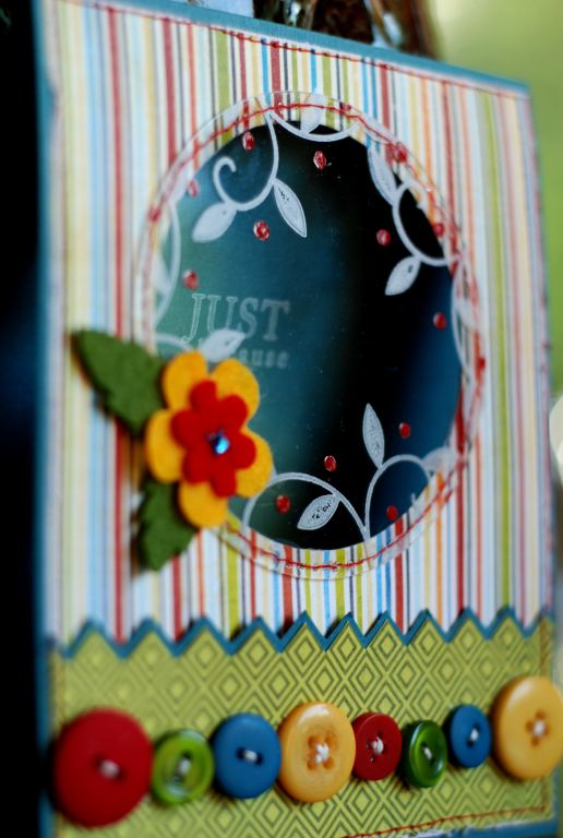 This next card was made using extra chipboard shapes from the Clear and Chip Miss Molly album. This flower was painted and then covered with Glossy Accents. Love the look.