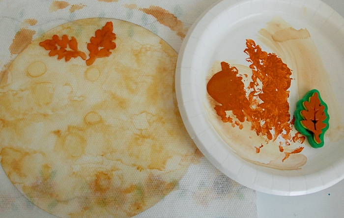 Then I took some orange paint and a foam leaf stamp and stamped a few leaves at the top: