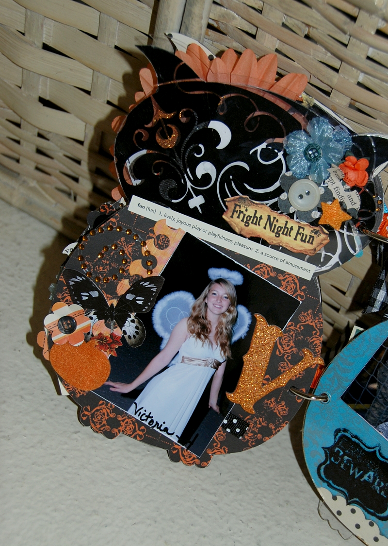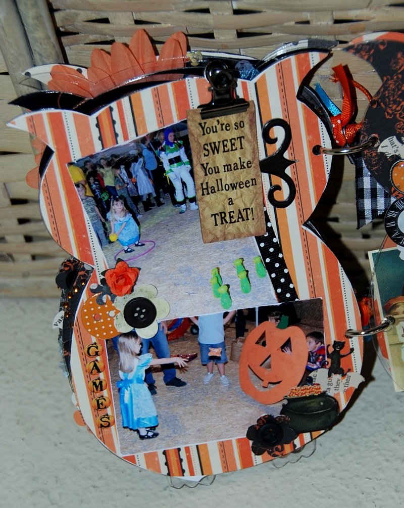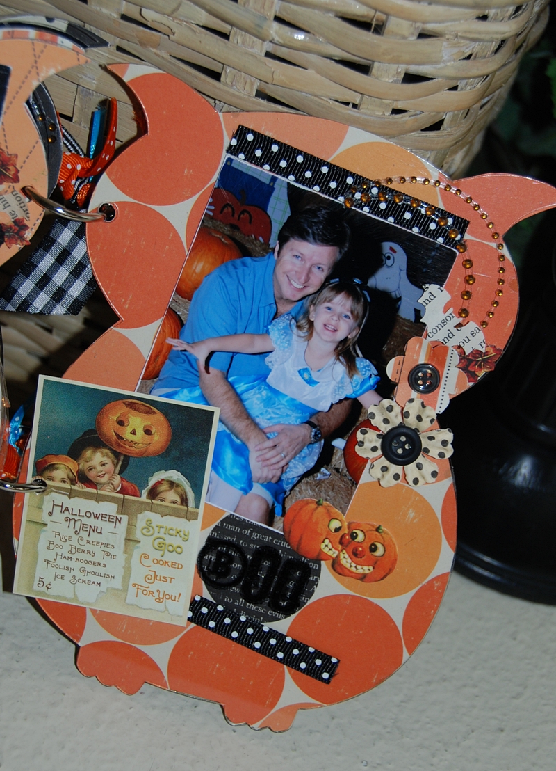 I LOVE this fun owl with the cut-out and with some strategic planning on the acrylic, you can "see through" to almost every page!