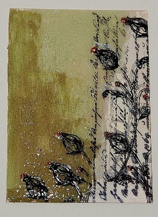 Above is an acrylic ATC that I've painted with Crackle Paint and later seal it using Glossy Accents. This will gives the crackled surface a dimensional and glossy look.