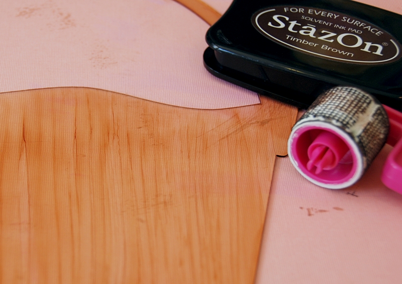 2. Then you will need Staz On in brown and a Rolling stamp from Glitz Design. Ink you roller stamp and cover the handles and add two rows at the top of the basket.