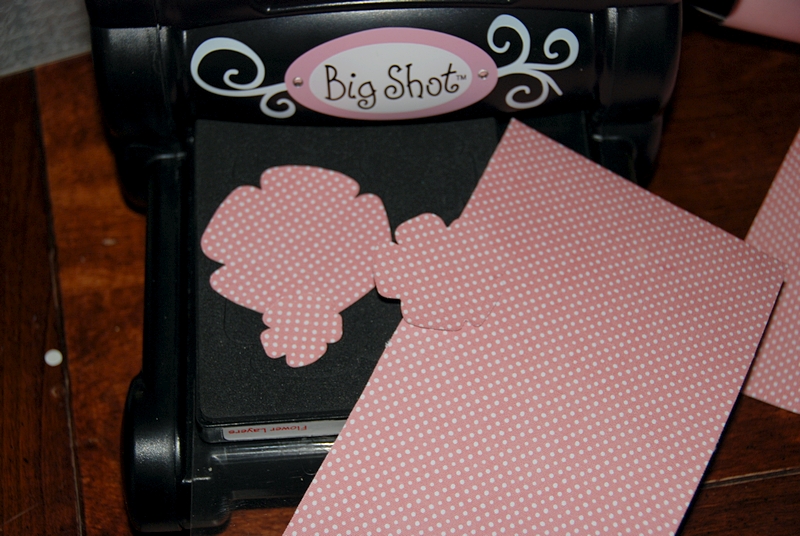 The using a Sizzix, I took one of their flower dies and cut out 4 flowers. PLEASE NOTE: To make a mirror image of the flowers, you will need to die cut 2 with the fabric facing up and 2 with the fabric facing down.