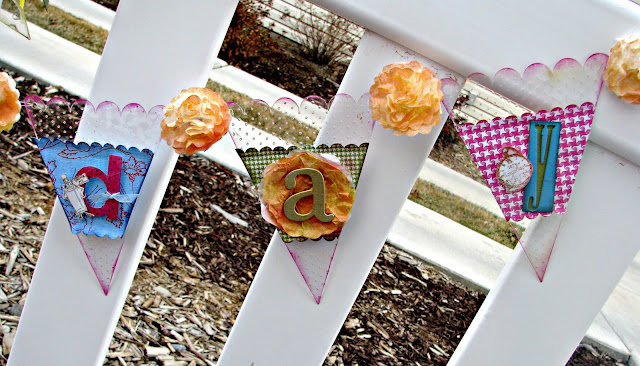 I used two banners to make this project, the Birthday Banner and Acrylic Large Banner. I wanted this to be bright, cheery and fun! I used papers from GCD Studios Homespun Chic Collection by Melody Ross. I thought this idea would be so fun, perfect for a birthday (or un birthday!) party! I am so glad I save all my extra scraps when I create a layout!