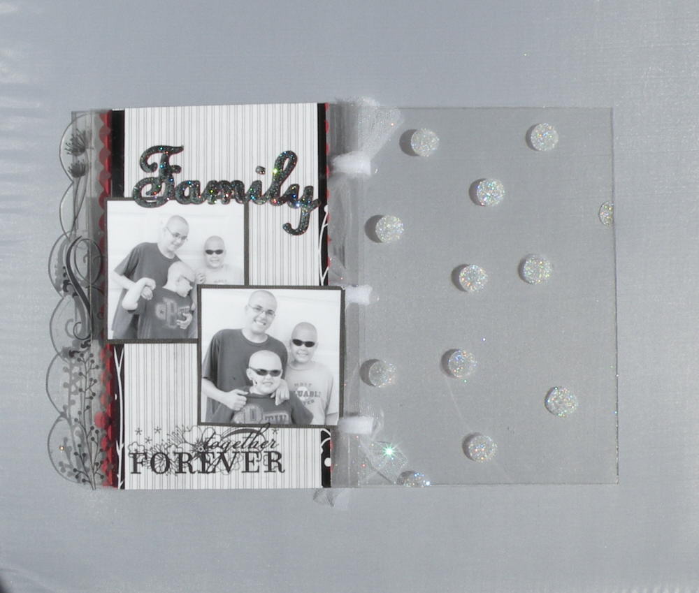I used all wallet sized photos and on the covers I used clear Zapdots with Ultra Fine Glitter. It really gave the album pizazz!