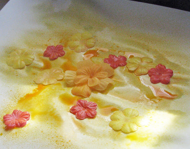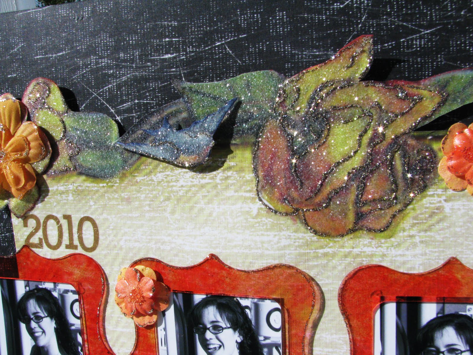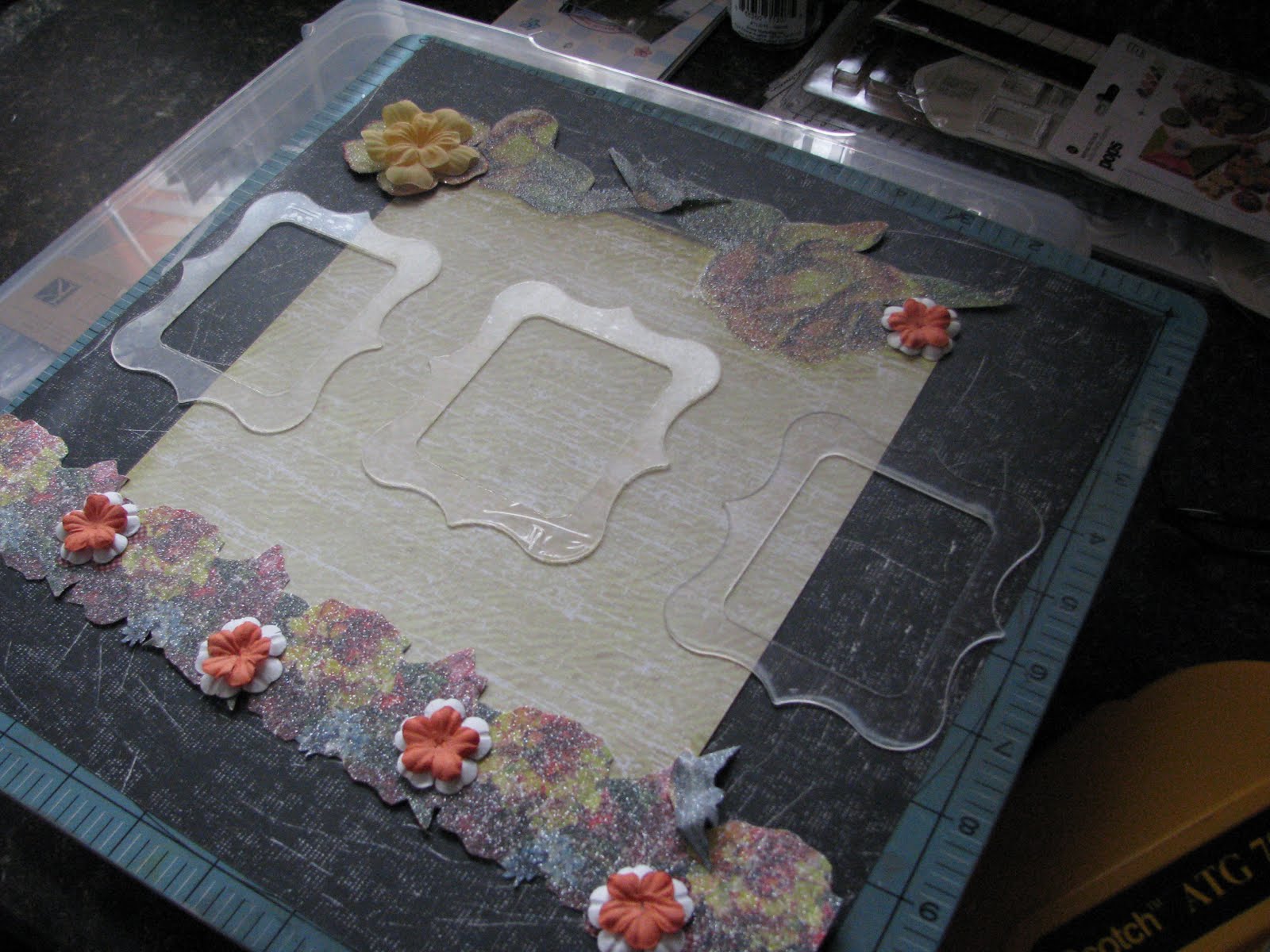 Of course I needed my flowers to match so I brought out my mists (Tattered Angels Glimmer Mists and Shimmerz) and sprayed until I got the match to my frames!