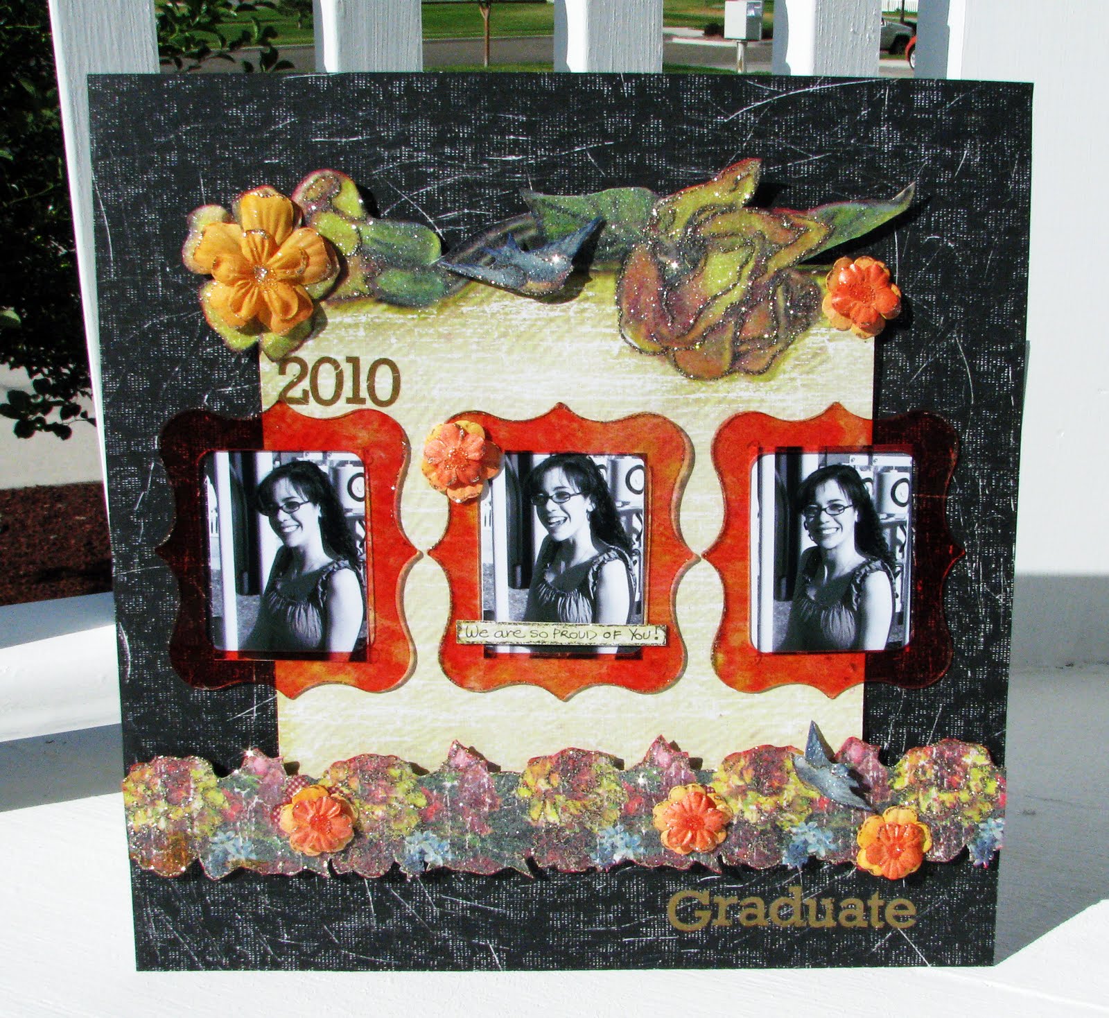 I had and idea for a layout, these great papers (GCD Studios Artsy Urban- love, love , love the glitter!)) and these very cool looking frames (Clear Scraps).(And some cute pics of my oldest daughter!) I wanted it to pop so I needed to add a little color! I laid it out how I thought it would go then wnet to work!