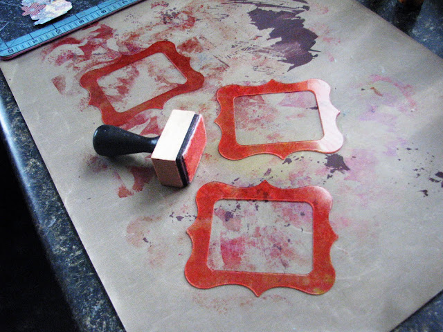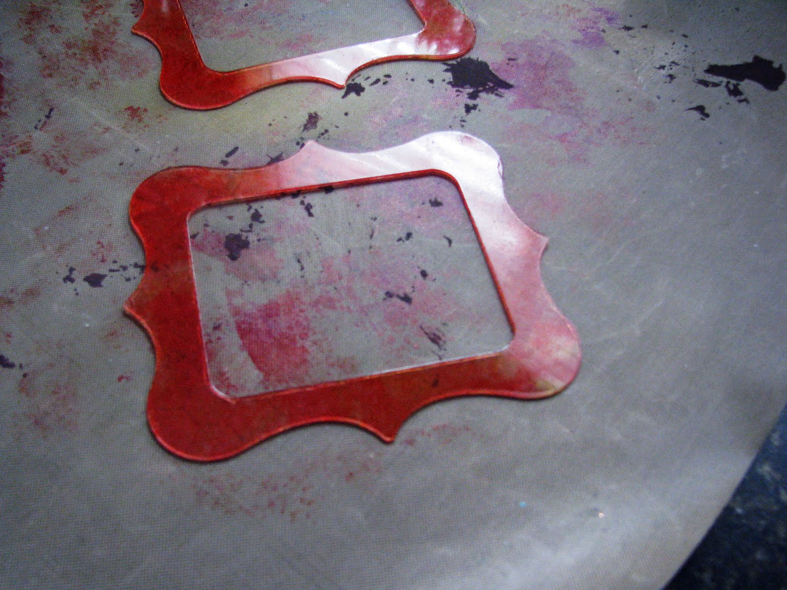 First I had to give the acrylic frames a little color, I did this with alcohol inks.What nice is if it doesn't come out quite how you thought you can add more color to make it darker or different colors to change it. If you still dont like it you can use alchol blending solution, wipe it off and start over! LOL! I used red's and yellows. Here is a close up…