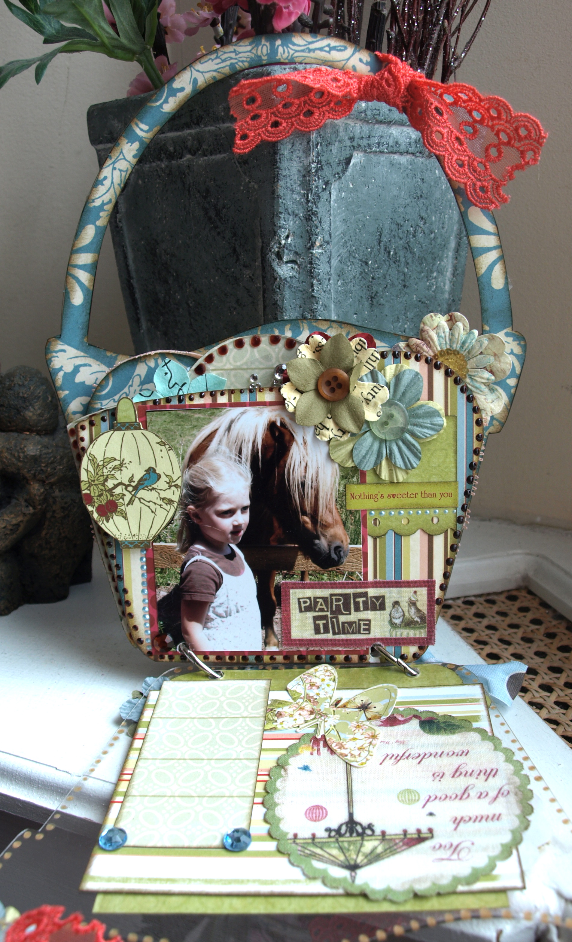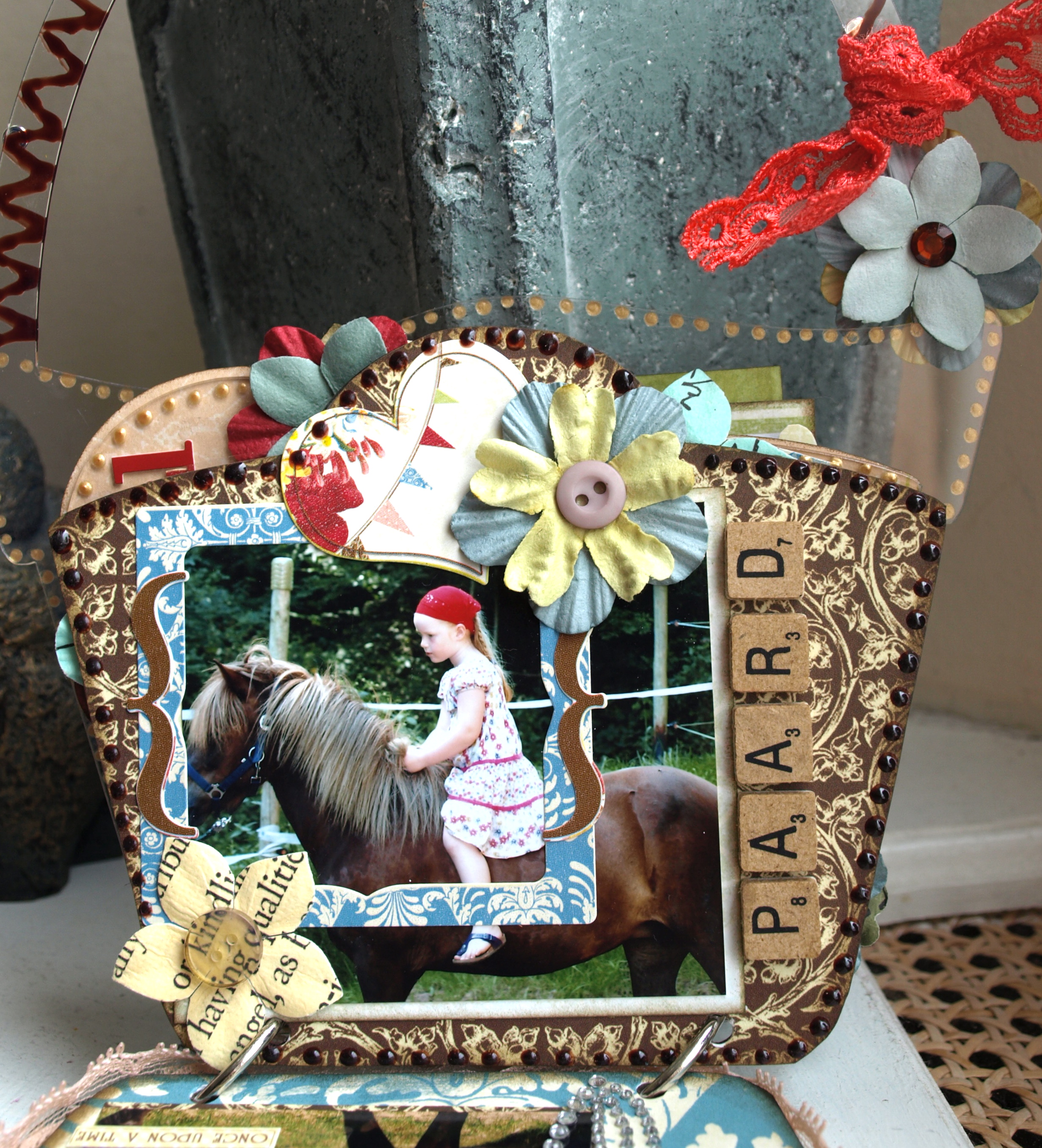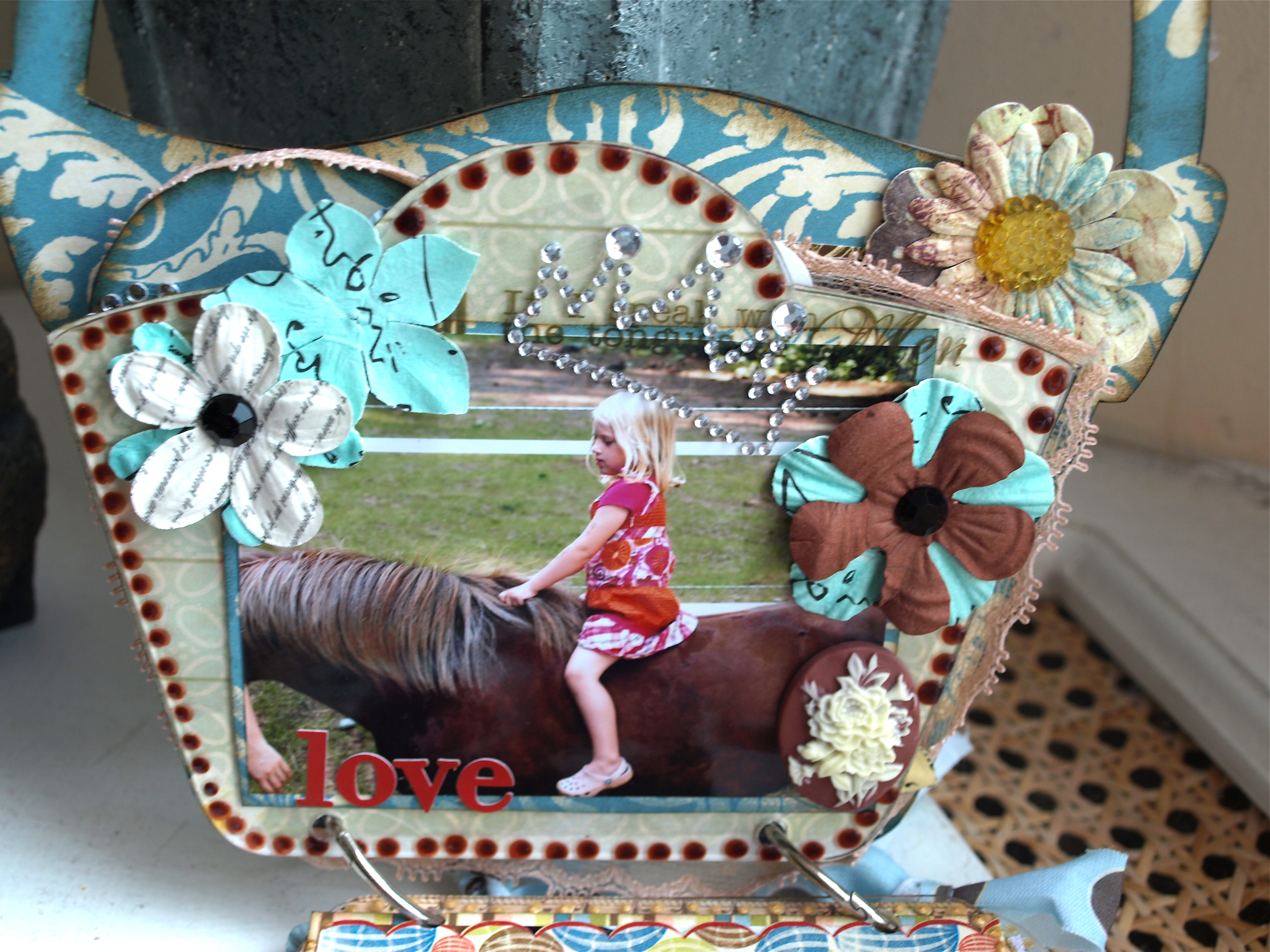 I'm always in the mood for creating a mini album. This time I choose the Acrylic Basket Brag Bag. I had some lovely photos of the girls with animals.