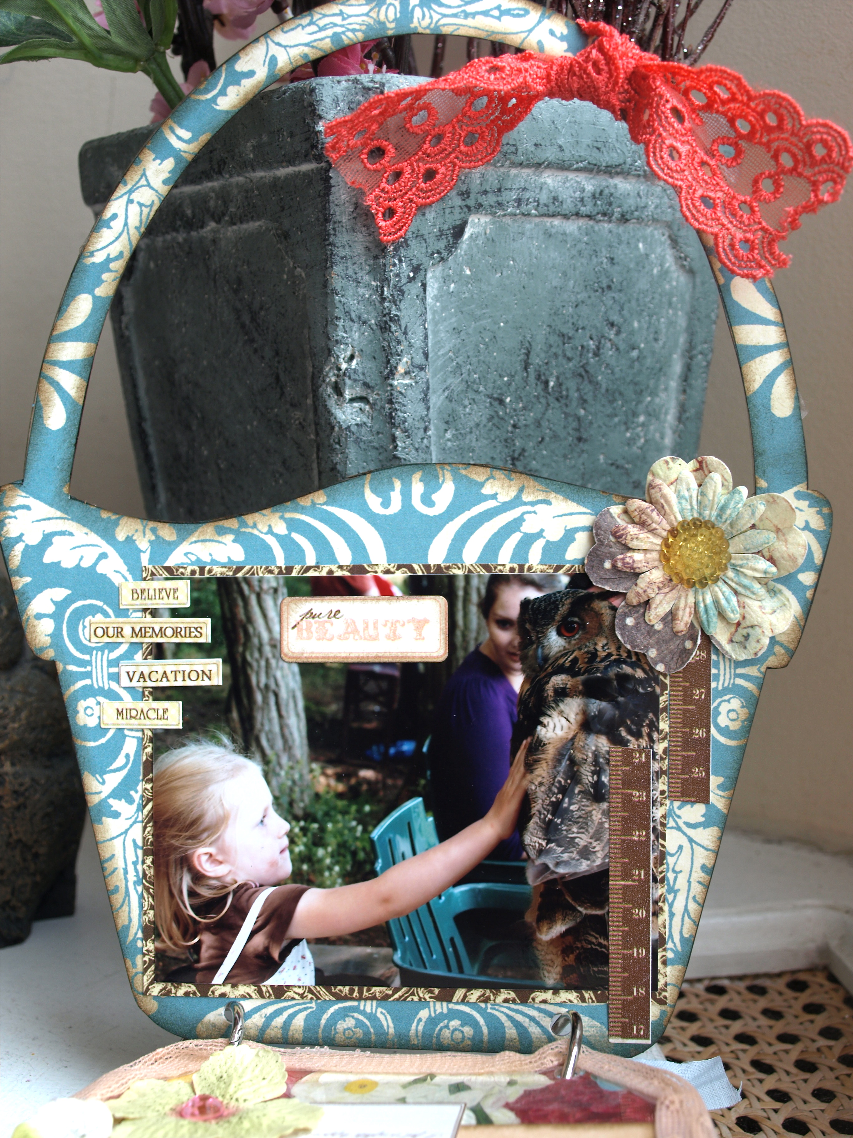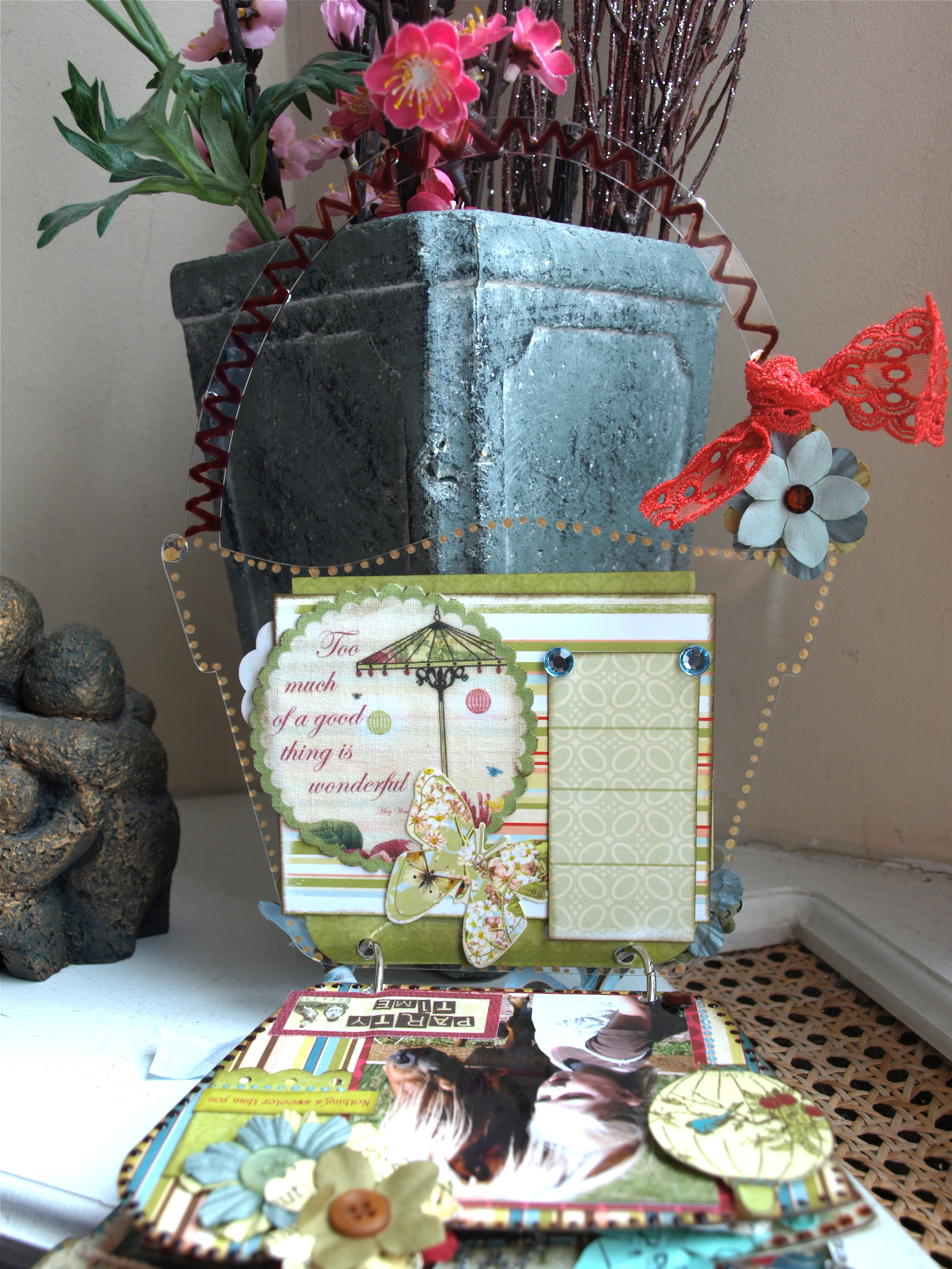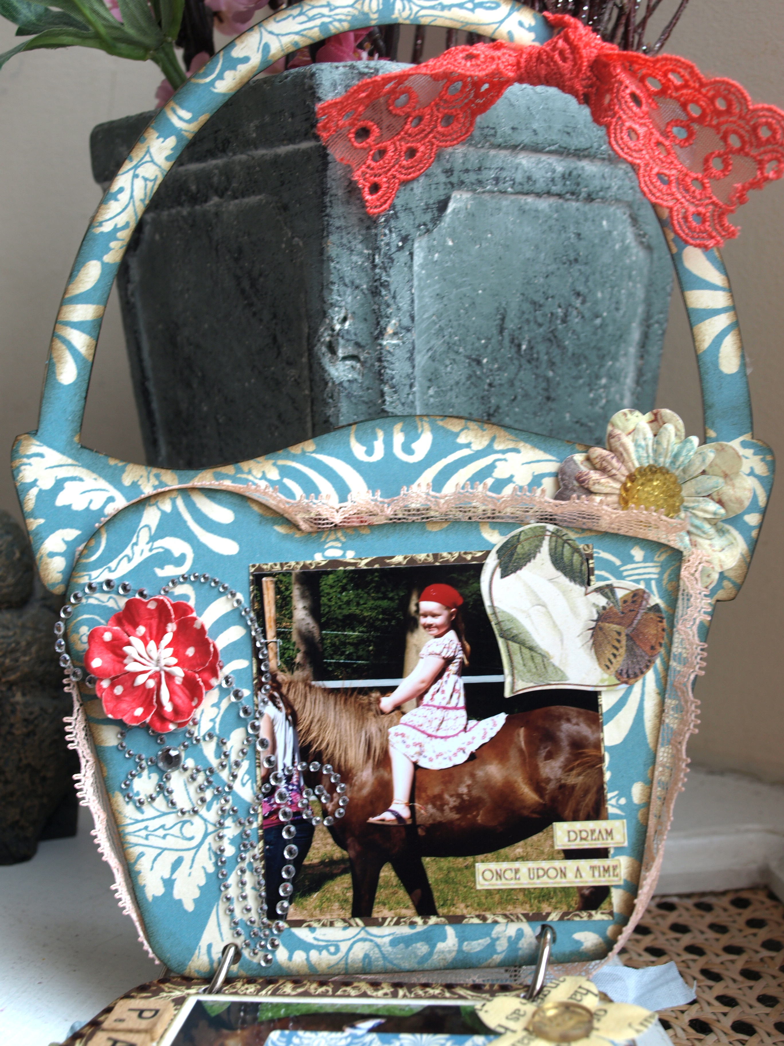 I'm always in the mood for creating a mini album. This time I choose the Acrylic Basket Brag Bag. I had some lovely photos of the girls with animals.