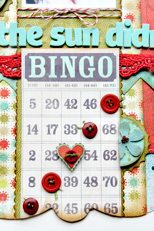 They are hands down one of my favorite items that Clear Scraps makes. I adore using them as a base for a layout. For this following layout I used one of the pieces from the XL scallop shape pack. You know what else I love? My Mind's Eye and the fact that they are a product swap sponsor with us. I also used Tattered Angels Glimmer Spray on the back of the page and used Super Seal on top to keep the mist from smudging. Around the edge of the page I applied little dots of paint with a ZIG paint pen.