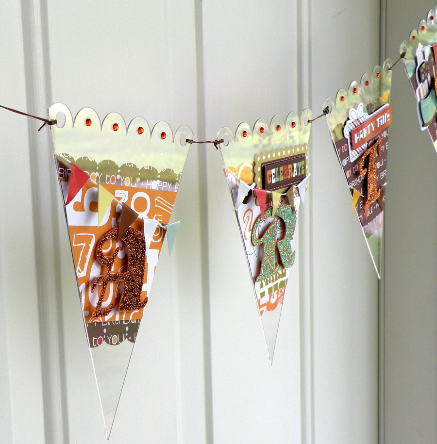 I used my Cricut to cut 2" letters that spelled Party, I stickled each letter and used foam pop dots to adhere it onto the front. I glued down rhinestones to the scallops.