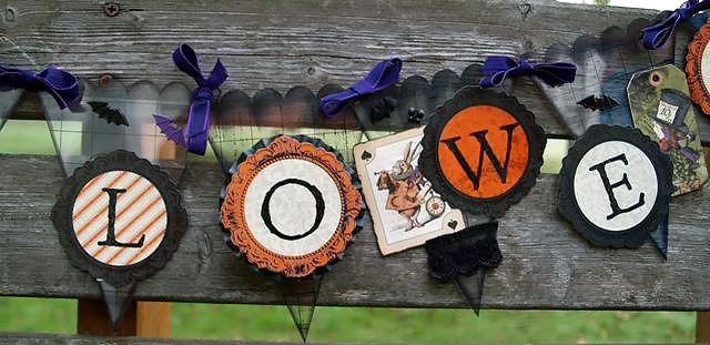 With Halloween just a few short weeks away it's never to early to start on some decorations to get into the spirit of Halloween. Today I am featuring the small banner from Clear Scraps. It has 5 pieces to a package for $5.99. I used two packages to create the Happy Halloween Banner. Click on photos for a larger view.