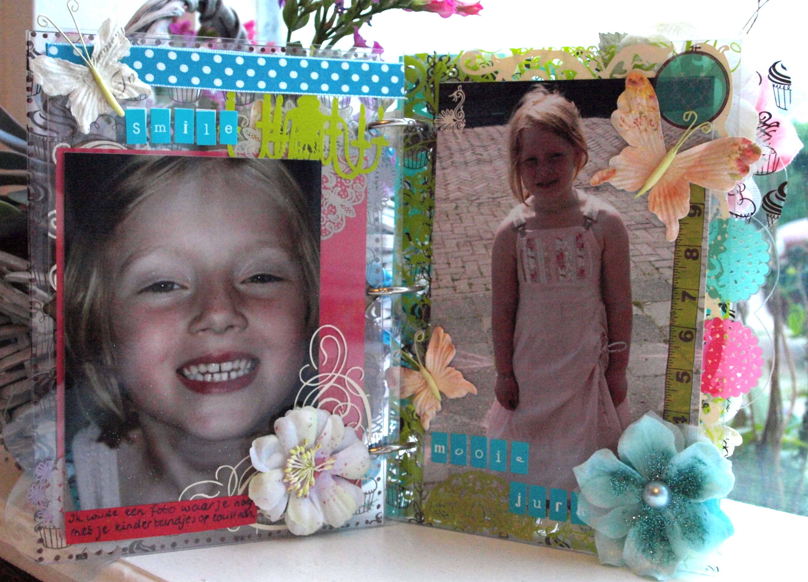 So I selected this Clear Scraps mini album to create an album with some pictures I just cherish at this moment. Photos that mean lots to me. Amy ( my eldest ) exchanging teeth, Fenna and Amy having so much fun while baking cakes, Fenna with all of her babyteeth ( which won't last for a long time anymore I guess)…..