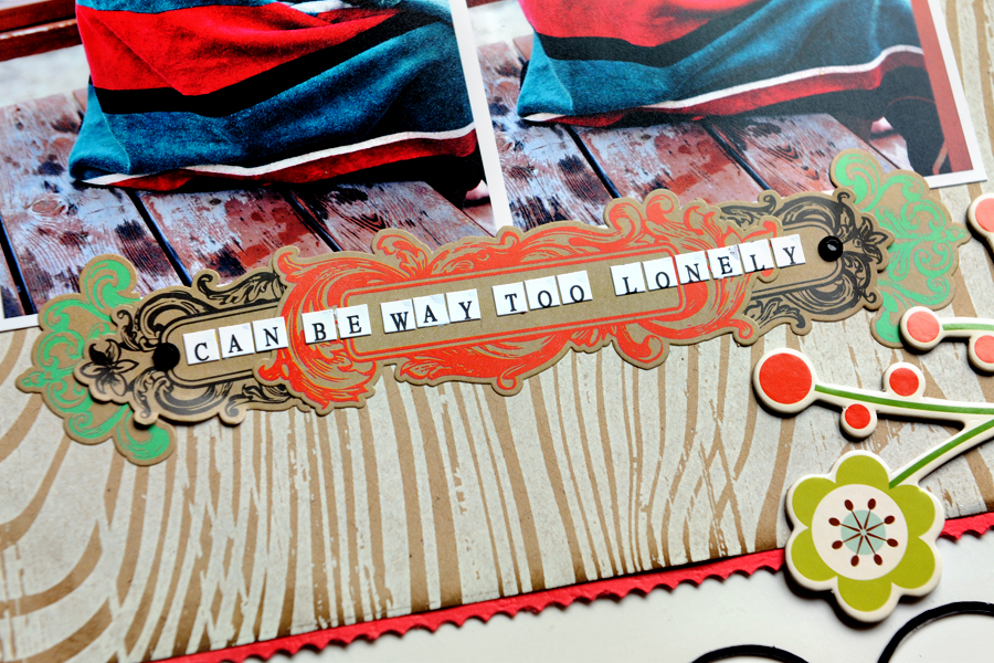 This layout was made using an XL Clear Scraps shape, Hambly woodgrain paper, Hambly Stickers, Cosmo Cricket chipboard, ZIG Paint pen, and the corrugated alphas are from Jillibean Soup.