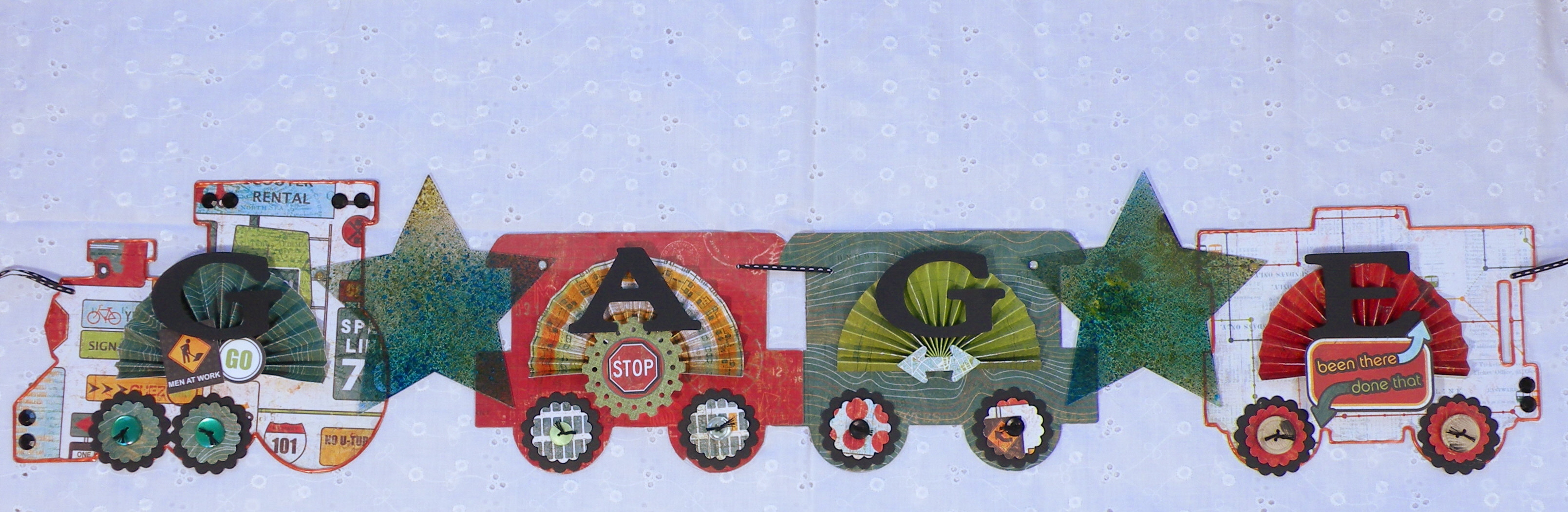 I added buttons to the wheels and a little circle scalloped punch.