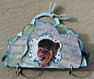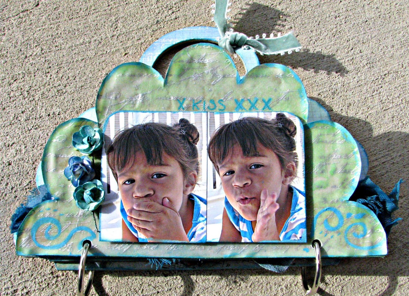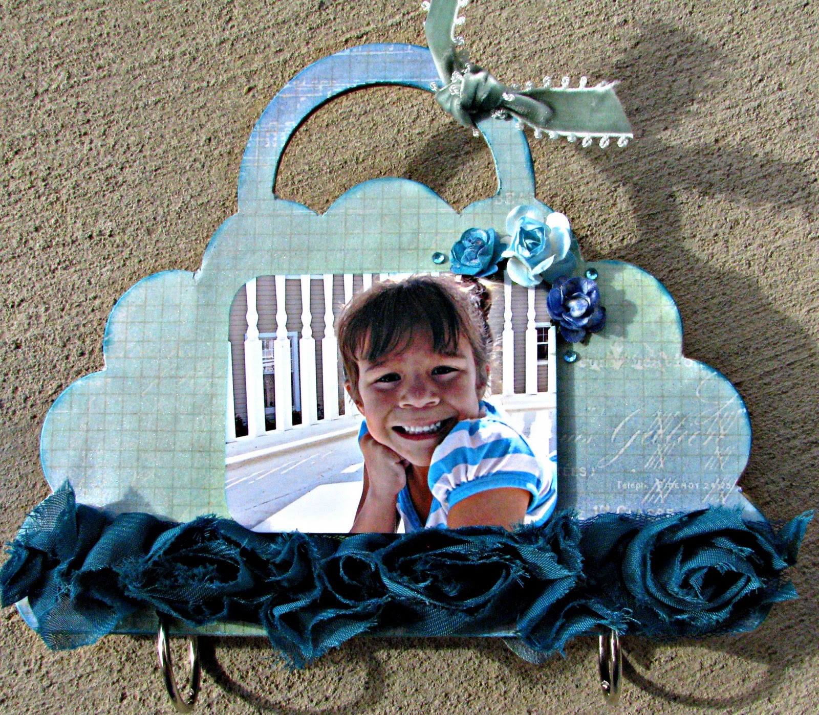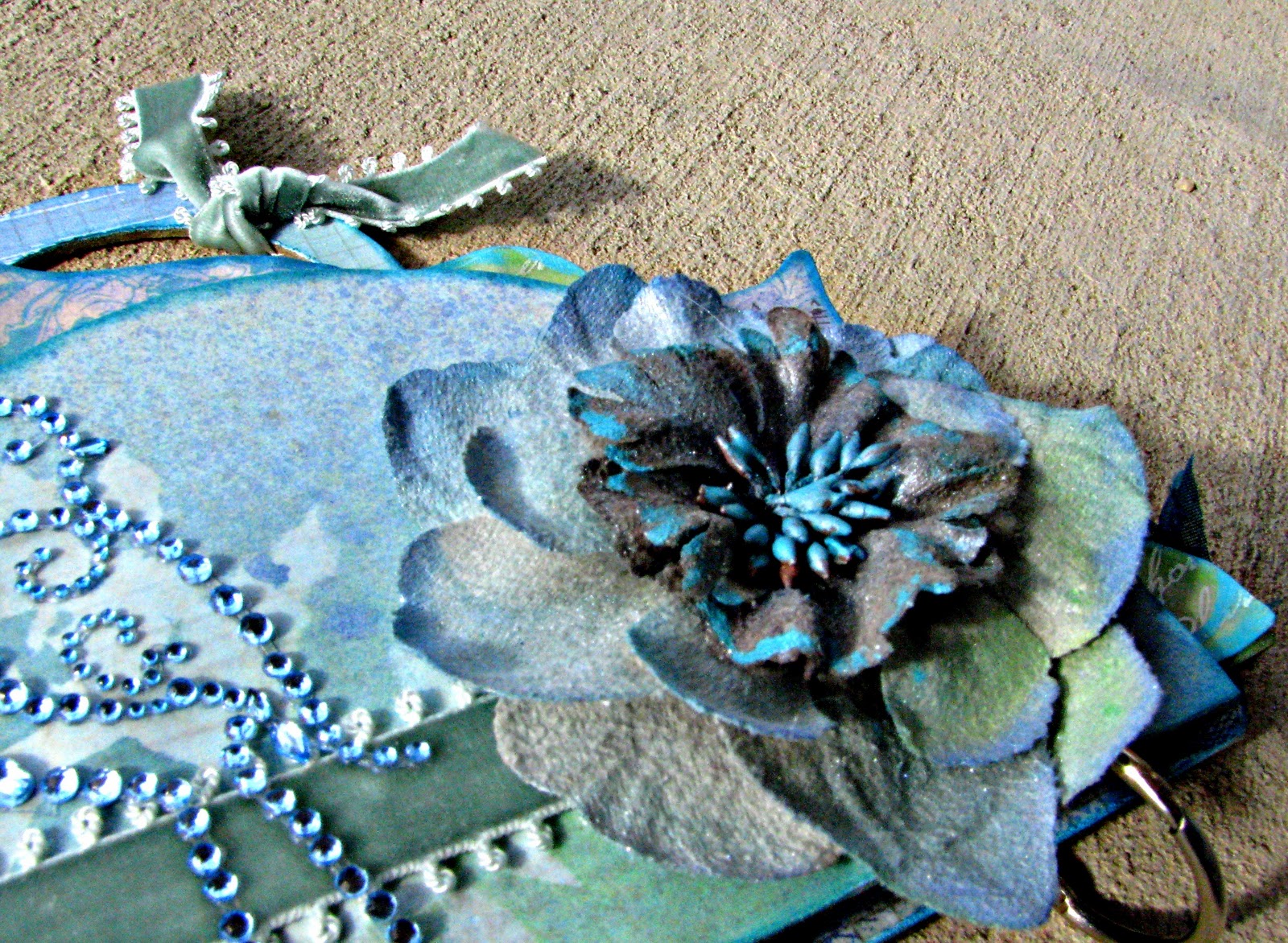 Supplies used:   Chipboard flower brag bag” from Clear Scraps,   Shimmerz Vibez spray in “Sea Monkey” and ”Hermit the Frog”, Shimmerz Spritz in “Sapphire”,   Shimmerz Pearls in “Blue By u”