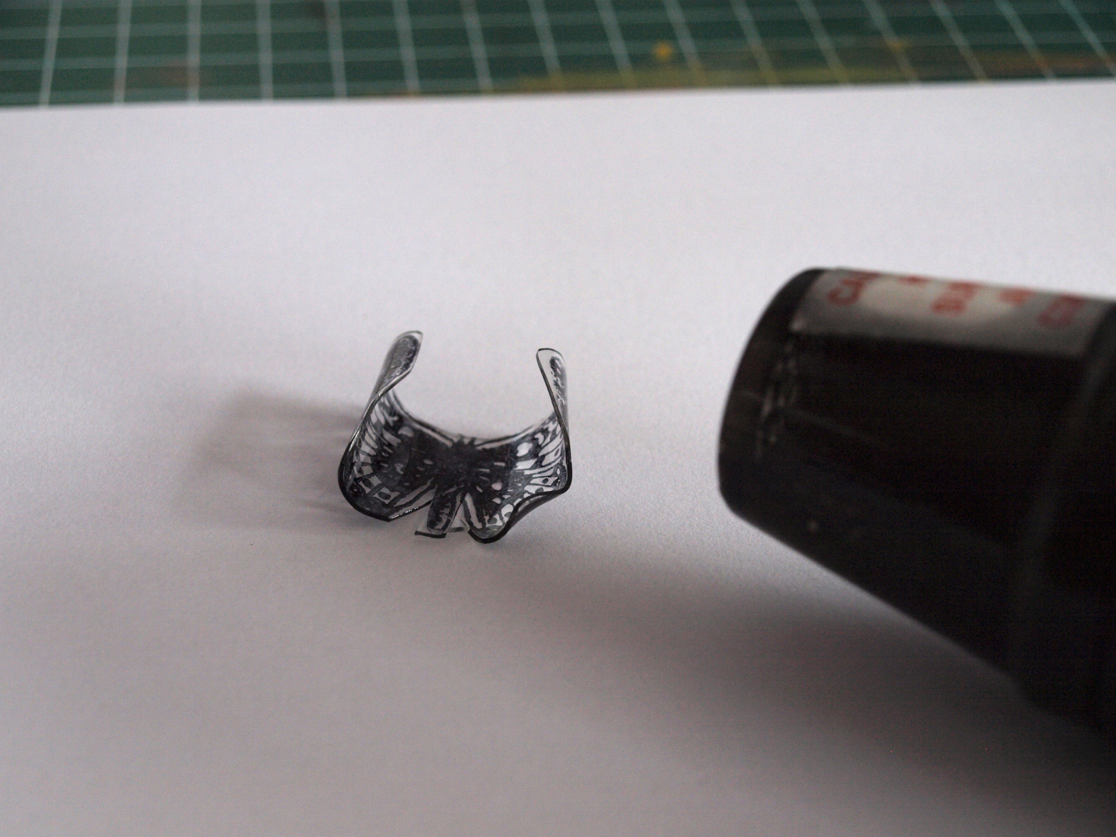 Now comes the fun part! Use your heattool to heat up the acrylic. It will become flexible and you can curl up the wings.