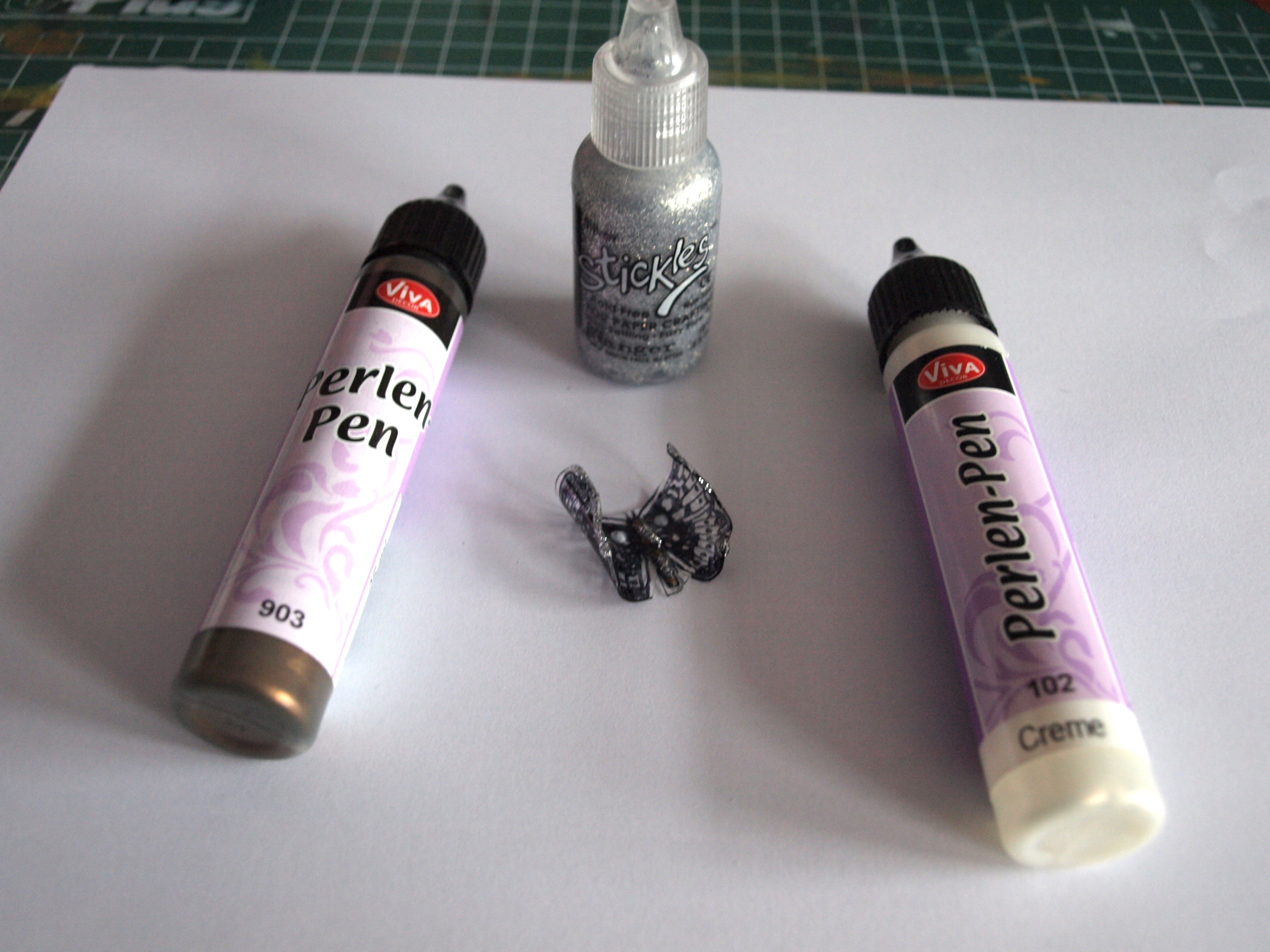 And as a final touch you can decorate the butterfly with stickles and pearl dots.