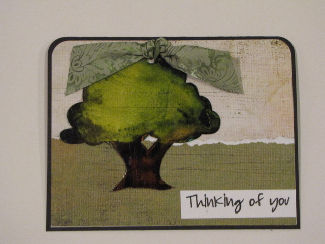 For this particular card, I used Ranger alcohol ink to dye the tree and Copics to add brown to the trunk. The hole in the top, intended for the ring to hold the whole album together, makes a perfect place to add a ribbon or brad to embellish my tree.