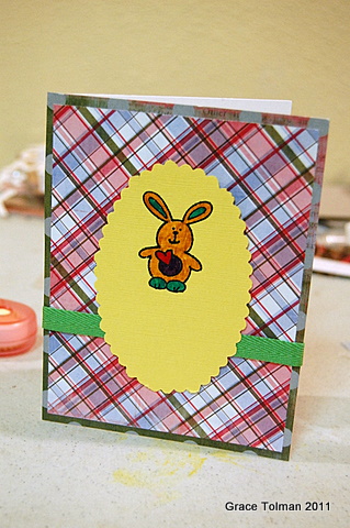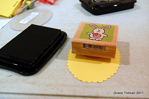 Next is to stamp the bunny image onto the top of the yellow cardstock piece.