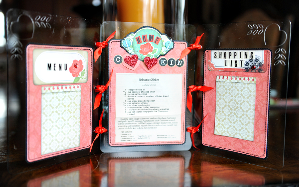 When I received one of the new Clear Scraps Tri-folds I decided that I wanted to do something functional with it. After some time pondering I came up with a clever little idea…use it as a recipe holder. You know the kind that sit out on the counter and hold your recipe for you while you are cooking?