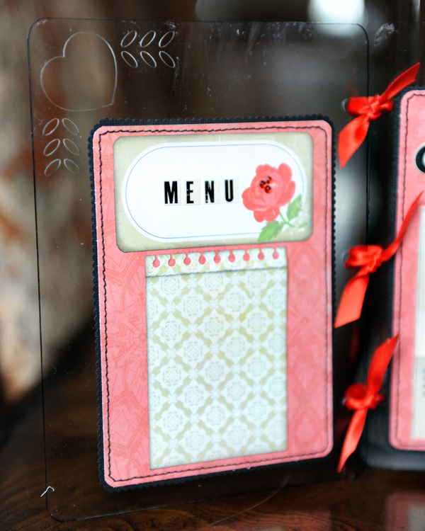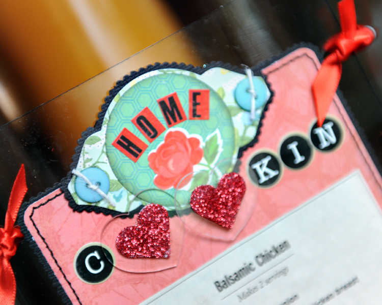 Do any of you have a history of going a little overboard shopping from QVC years ago? I admit, I bought way TOO much scrapping booking items from them. One of those items was a glue called "Wacky Tack". I still haven't found much use for it, but it came in handy for this idea. It is a sponge tip bottle of glue that when you put it on it is wet and when it dries creates a post-it like adhesive, one that you can reposition over and over. For this project I put it on the main large rectangle bases so that you could change the recipes and the menu and shopping lists to match each recipe.