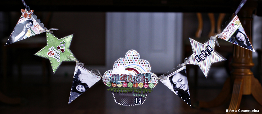 Hello and good Monday morning everyone. I am so excited to share this project with you today. It's another gift for my nieces 13 birthday. I really had so much fun doing this Clear Scraps Birthday Banner Project. What a fun gift for anyone but most specially for young people like my niece. She really loved it, and It looks really cool hanged by her bedroom window. Also, used the Imaginisce – Berrylicious Collection Set which was an awesome match for my project. I love it!