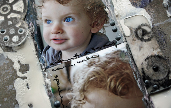 Using my black Viva Perl Pen, I then added dots and fake brads around the gears and photo edges. I finished the layout off using Shimmerz Paints, making sure that the paint dripped behind the acrylic edges for added dimension and texture. I think I am in love. And not just with the boy in the photo, but with everything I am going to be able to create with Clear Scraps acrylics. Having the ability to customize every piece to my the individual projects and pages I am working on, is a dream come true!