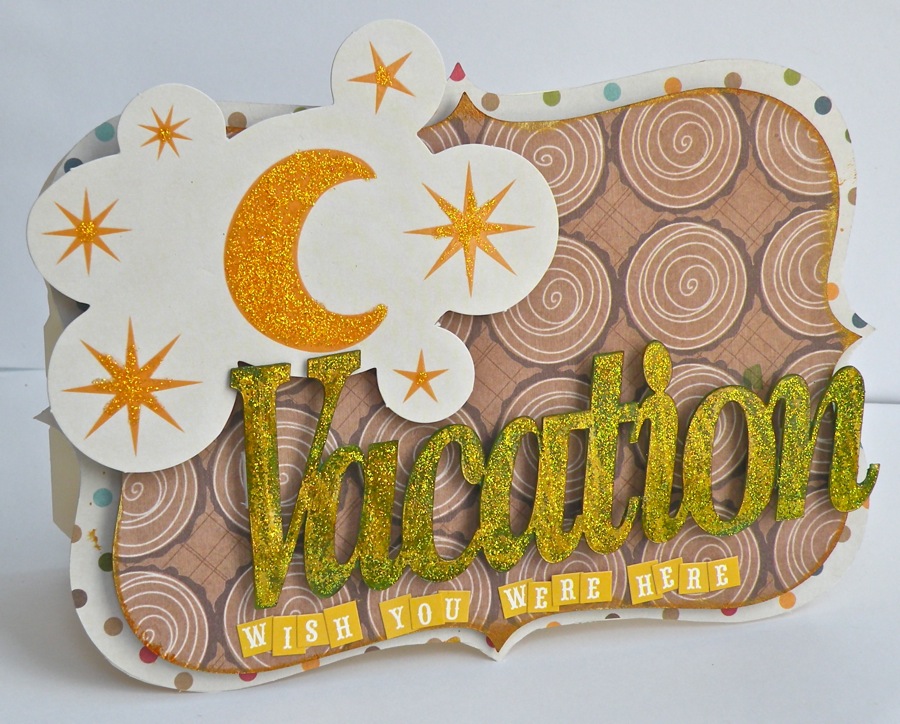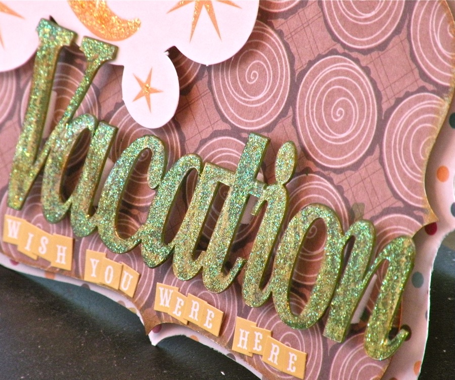 I painted the "Expression" Vacation on the back side of the Clear Scraps Acrylic, then I glittered the front. It really gives the card that special WOW factor.