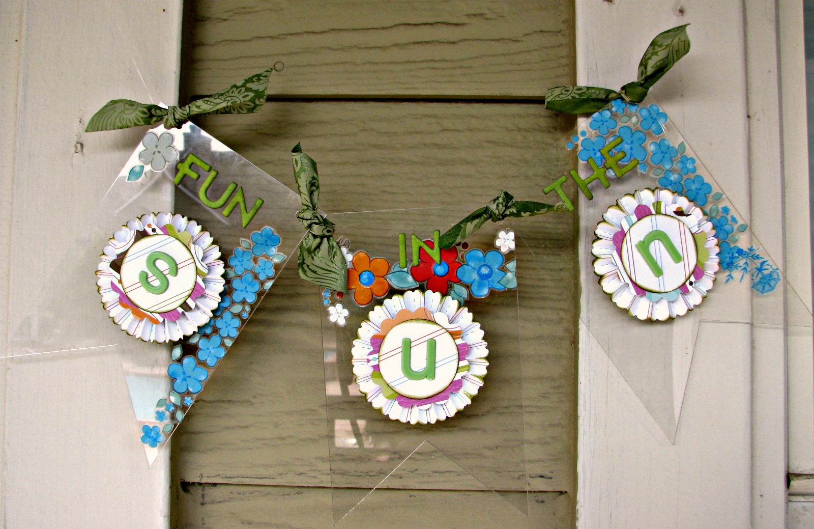 I made this banner with Clear Scraps Pennants and manipulated my Ta Da Creative Studios papers with my Cuttlebug and Tim Holtz Alterations Paper Rosette die! Did you know that rub ons look great on acrylic?