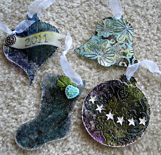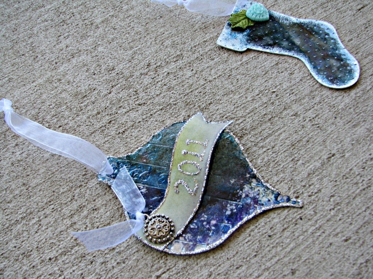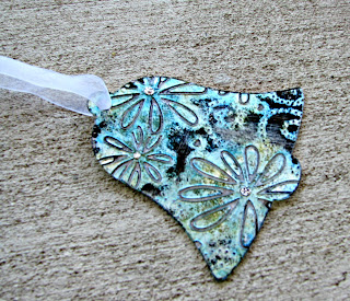 Christmas in July? Yep! Did you know Clear Scraps makes ornaments? Clear Scraps acrylic is so versytle that you can do just about anything to it and its going to look great! Here I took a small shape and used an embossing folder to dry emboss it through my Cuttlebug! Then I used Alcohol inks - blues and greens then covered most of the back with a Paint Daubbr in Pearl.