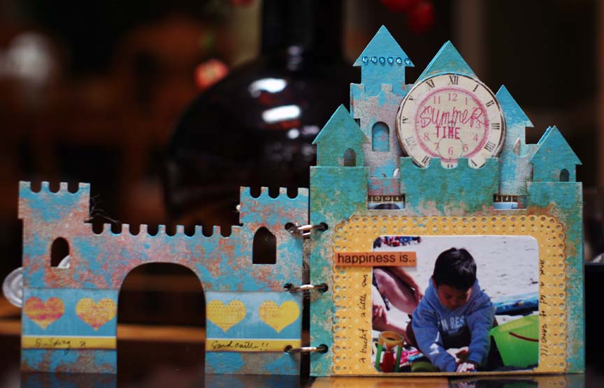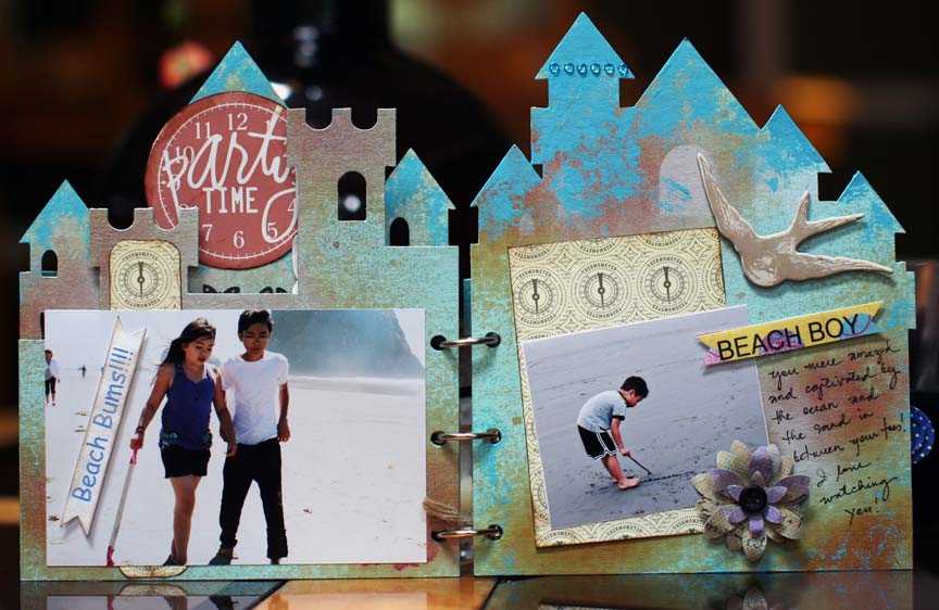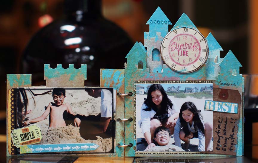 Hello everyone!! hope you are having a wonderful summer!!! It came a little late for us but now that it's here it 's wonderful! Hopefully it will extend onto early fall, that would be really nice! Speaking about summer, here's an album I made – "at the Beach" using the Clear Scraps CB Sandcastle Album . I love shaped album, it's so much fun to work on, it's quick and easy and Clear Scraps has a lot of it. With this project, I played with Tim Holtz distress crackle paint and color wash spray. With technique, you just have to experiment and it may turn out into something you really love! :)) like I did, I love the color and texture on this one. I then added my favorite photos and embellishments. Thanks for being here and hope you like it!