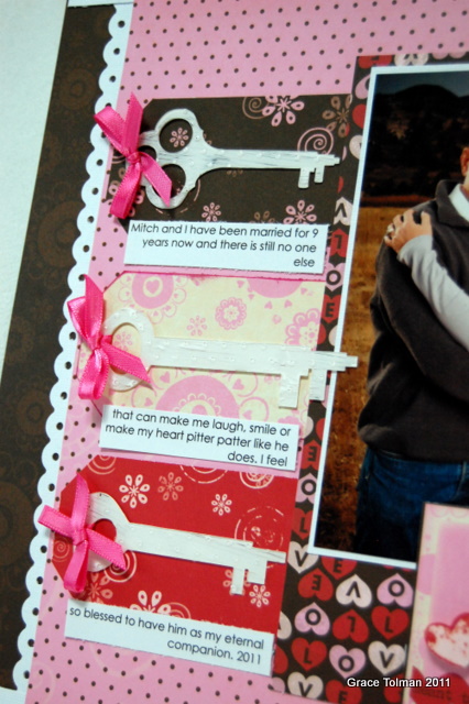 Don't you just love it when inspiration strikes you in the most unexpected ways? Well that's what happened to me with this page. I really loved the keys and locks pack and racked my brain as to how to use it. After going through my photos, I came across this photo of me and hubby and the "keys" inspiration made me come up with the title and journaling for this page. This just shows you that inspiration doesn't always have to come out from photos and/or stories. Sometimes products can lead you to prompts that you haven't even thought about!