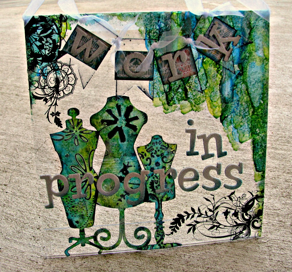 Did you know that you could use almost any type of cool techniques that you use on paper, on acrylic? Rita Barakat here to show you three different techniques to use with your acrylic! Here are these gorgeous new dress forms and before attacking them with (1) alcohol inks I ran them through my (2) embossing machine with an embossing folder! Then I took a little black (3)Staz On Ink and lightly tapped the embossed surfaces!