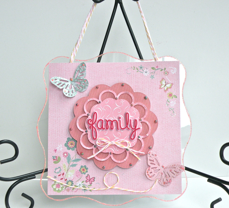 I decided I wanted to make a spring wall hanging that was soft and pretty for Easter time with my family in mind. This is what I came up with.