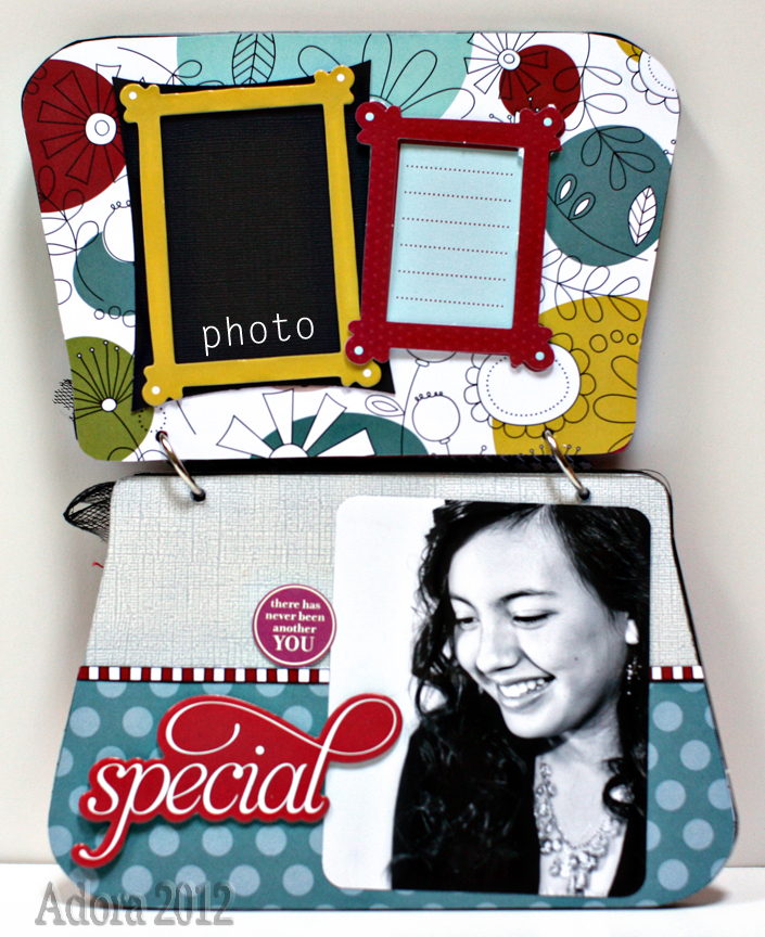 Hi Clear Scraps follower!! Today is another album project for me to share! I love mini albums, I probably told you this so many times already, but I really do. I am inlove with them. 🙂 How do your start creating an album or any project? For me, It's hard to visualize without the photos, my projects are almost all the time start and build around with the picture. 🙂 I made this album for my niece, Malayah! Her birthday is next month. Anyhow I used one of the Clear Sraps Acrylic Brag Bag . These bags are so much fun and there are several shapes to choose from. You should check it out. I had so much fun working on this album and hopefully my niece will love it too. I think she will 🙂 Here are other supplies I used; Imaginisce "Sole Sisters" Paper Collection, 7G tags, Word Chipboard (unknown) and Zip Dry Glue. Martha Stewart Punch and Core'dinations Cardstock.