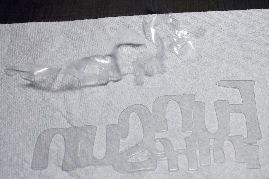 Start off by working on a non-stick craft mat. Peel the protective covering off the back of the word title.
