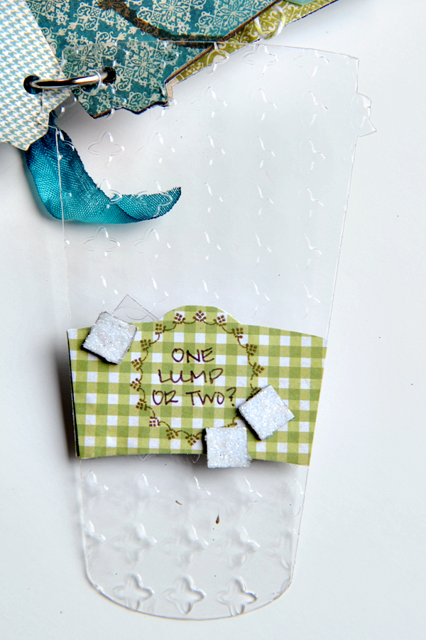 The acrylic pieces were also run through embossing folders and then the sugar cubes were painted white and then clear glitter on top of that. The ice cubes I simply adhered with Glossy Accents and that gave them the dimension of ice.