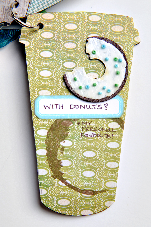 Hee, perhaps my favorite of the bunch…the doughnut! First painted brown, then after that dried the white frosting was painted on. Then seed beads adheres for the sprinkles. Lastly a coating of Glossy Accents over the frosting for that glazed look! Cool huh?!