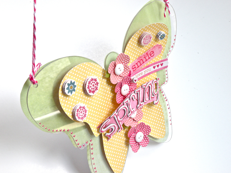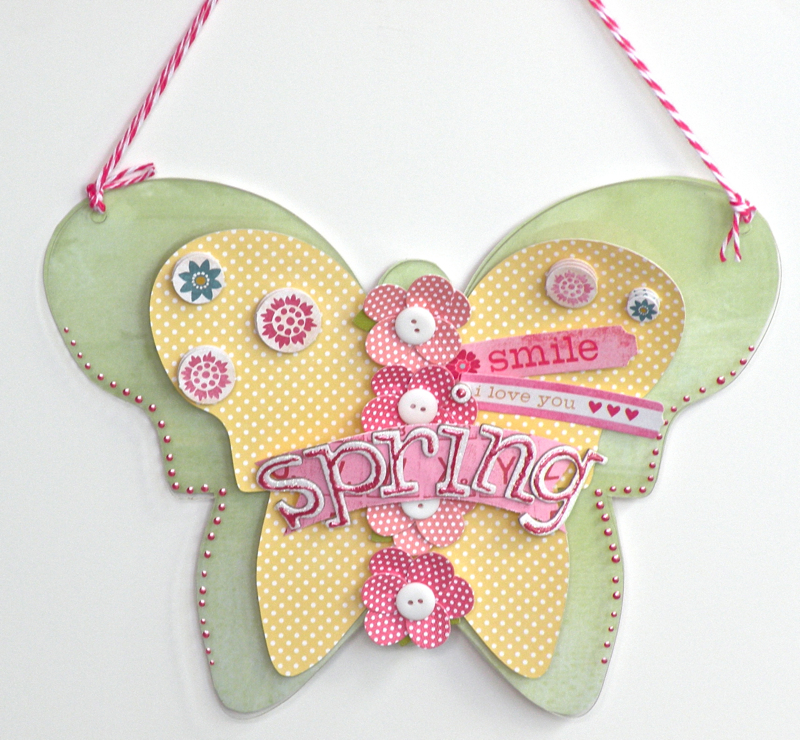 If you create beauty on both sides then it is perfect for a window, or one side for the wall! I used the amazing Clear Scraps Butterfly Album to create this seasonal hanging.