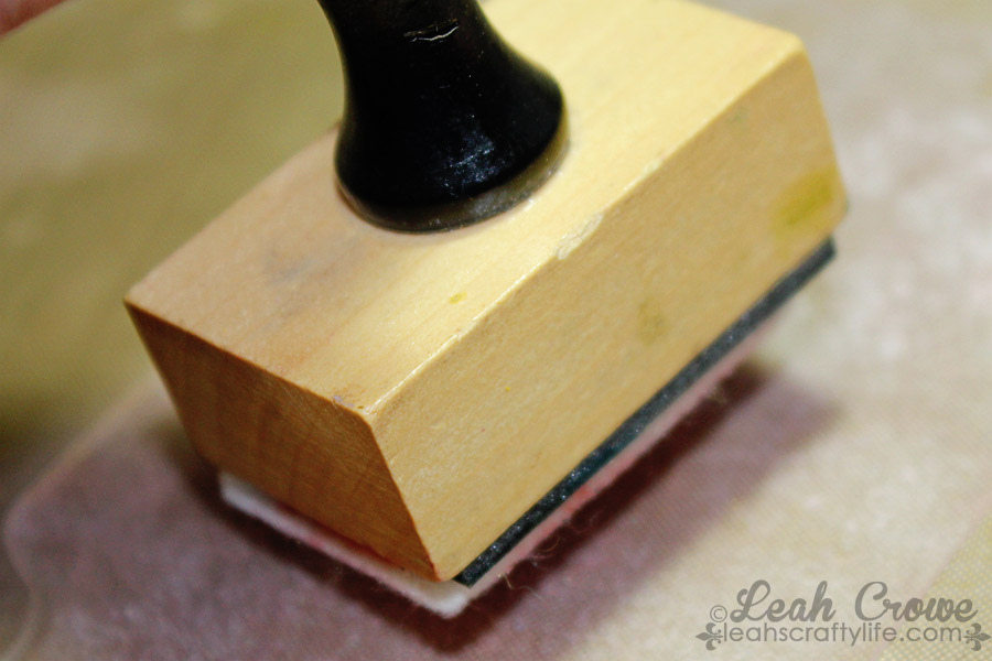 Peel the protective film off one side of your panel, then take your fully loaded applicator and pounce, straight up and down, moving all over the surface of the acrylic.