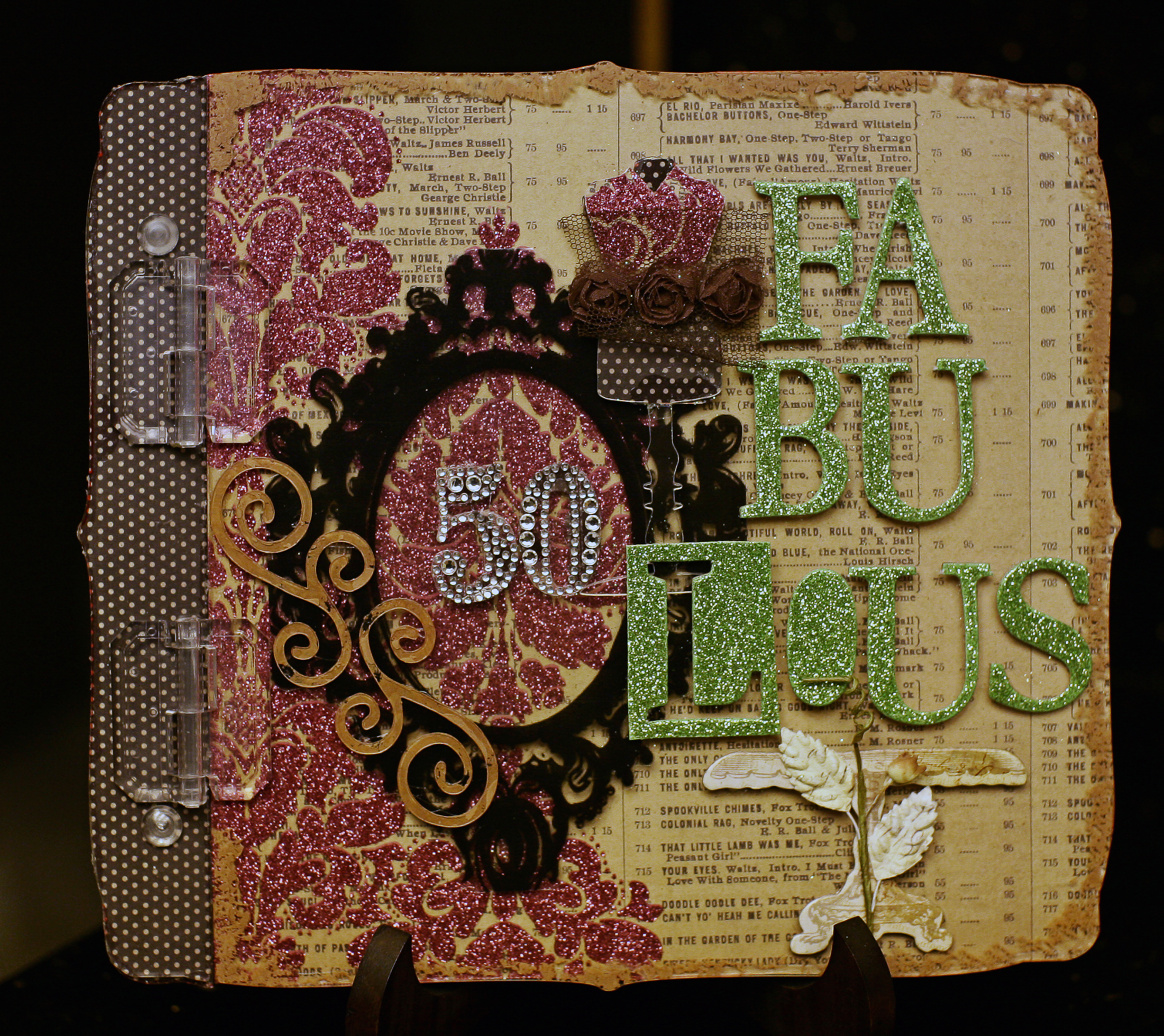 Here are the supplies I used: Clear Scraps; 8X8 Top Load Acrylic Album, Flourish and Dress Form embellishments, My Minds Eye Paper, Pink Paislee Chipboard, Websters Pages Alpha and Heidi Swapp Ornate frame, Tim Holtz Distress Crackle paint and Zip Dry Glue.