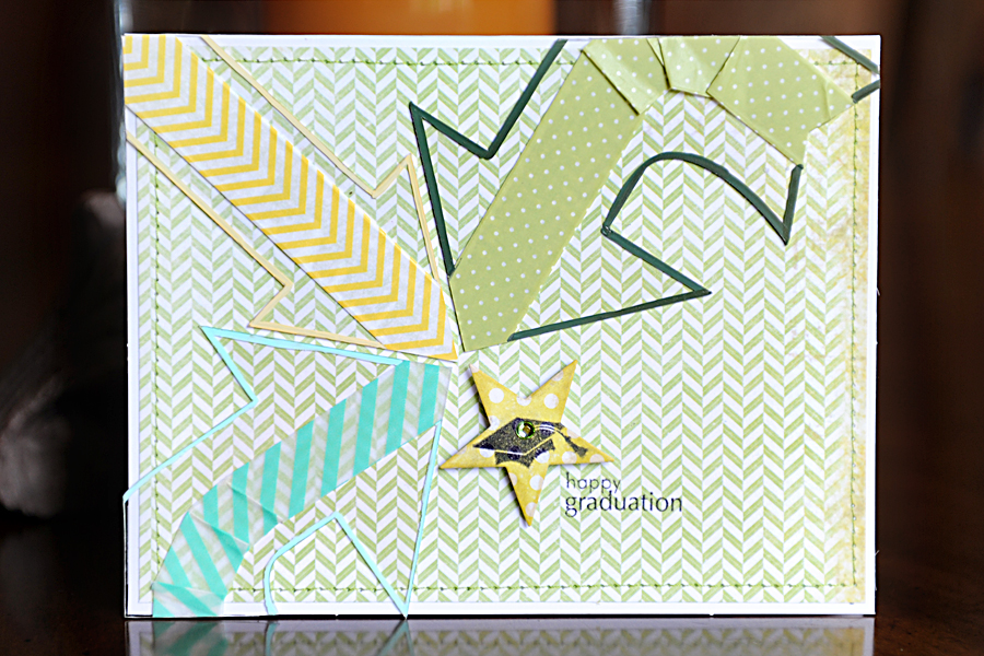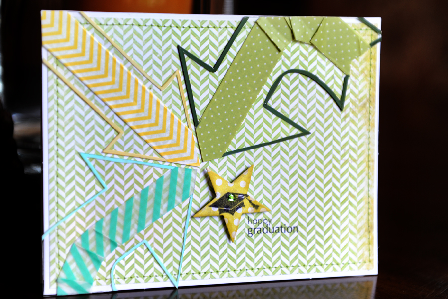 I simply arranged the arrows under my paper where I wanted them and then ran them through my Spellbinders Grand Calibur with the embossing mat. If you don't have a amchine that will emboss for you, you could easily accomplish this look simply by using a stylus and running it around the edges of your shapes.