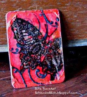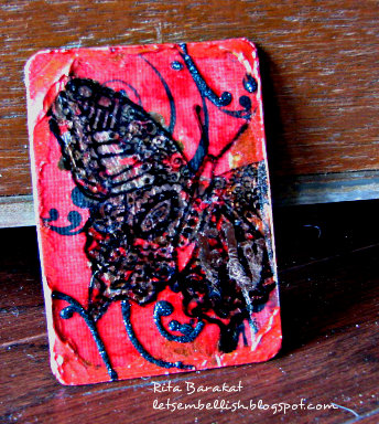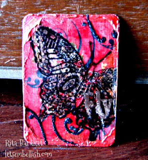 I stamped the image with Staz On Ink, used a rub on for the word FLY