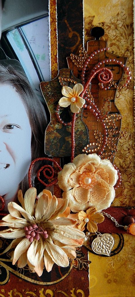 I've added some pattern papers to it and to dress it up, I've added some crystal swirls. Try adding some acrylic element to your layouts!