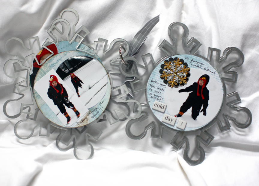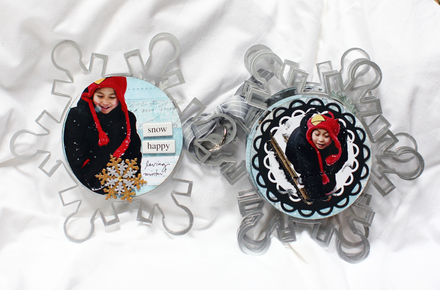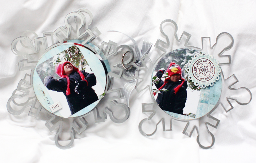 Hello hello and happy Friday everyone!!! Today I will share with you this album I created of my grandson enjoying the snow!!! A little bit of coolness on a hot summer day 🙂 . I love taking picture of this little guy, he makes everything seems so much fun and interesting! I'm also happy that there is a snowflakes album to house these photos I took!, besides just a regular square album :). I used the Clear Scraps Snowflakes Acrylic album, I thought it's perfect for these photos! A winter wonderland!!!