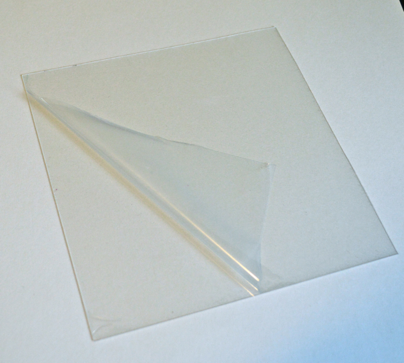 - Peel protective film off second sheet of 8X8 trimmed Clear Scraps acrylic.